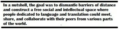 None of Translations’ workshops set out with the intent to produce a ready-to-publish translation of an entire novel or short story. Our objective, in my opinion, was far more important. In a nutshell, the goal was to dismantle barriers of distance and construct a free social and intellectual space where people dedicated to language and translation could meet, share, and collaborate with their peers from various parts of the world. Translators Barbara Skubic and Michelle Hartman have advised that translating should not be a lonely or isolated endeavor. Instead it should be a communal and collaborative one. Such was the space that Translations successfully fostered.