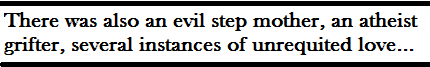 There was also an evil stepmother, an atheist grifter, several instances of unrequited love and a string of tragic, youthful suicides. There are probably too many intrigues to include in one book.