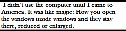 DM: In the suitcase I left Iraq with, there were, among other things, handwritten letters by friends and other writers. I didn’t use the computer until I came to America. It was like magic: How you open the windows inside windows and they stay there, reduced or enlarged. Now, like others, I communicate through the internet. I love to communicate with poet Fadhil al-Azzawi on matters of poetry.