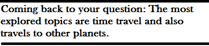 AL: What tropes of science fiction have you found to be the most common? (Travel to other planets, dystopia, time travel?) Why do you think that is?
