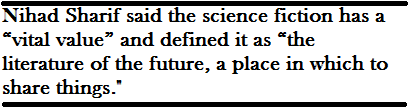 Nihad Sharif said the science fiction has a “vital value” and defined it as “the literature of the future, a place in which to share things.” In his opinion, science fiction was a means to create debates on matters of vital importance and a way to talk about them in an original way.